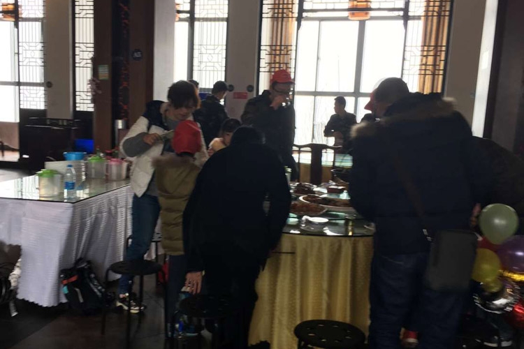 ?中午我們在景區的酒店吃年飯。大家互相說著祝福新年的祝福語,共同慶祝新年的到來。