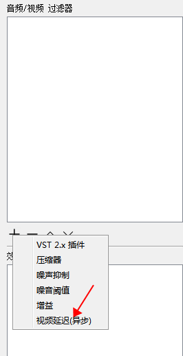 在彈出的視窗中,點擊“+”后選擇“視頻延遲(異步)”