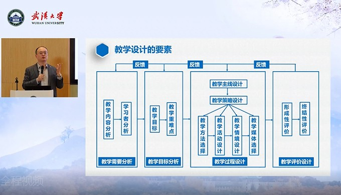 11月12日下午,由武漢大學教發中心組織的由華中師范大學鄧陽教授授課的“從教學設計到說課:理念、要素和方法”活動,在武漢大學教1會議室舉行,本次活動直播由思非直播現場技術支持、微贊平臺同步互動直播。